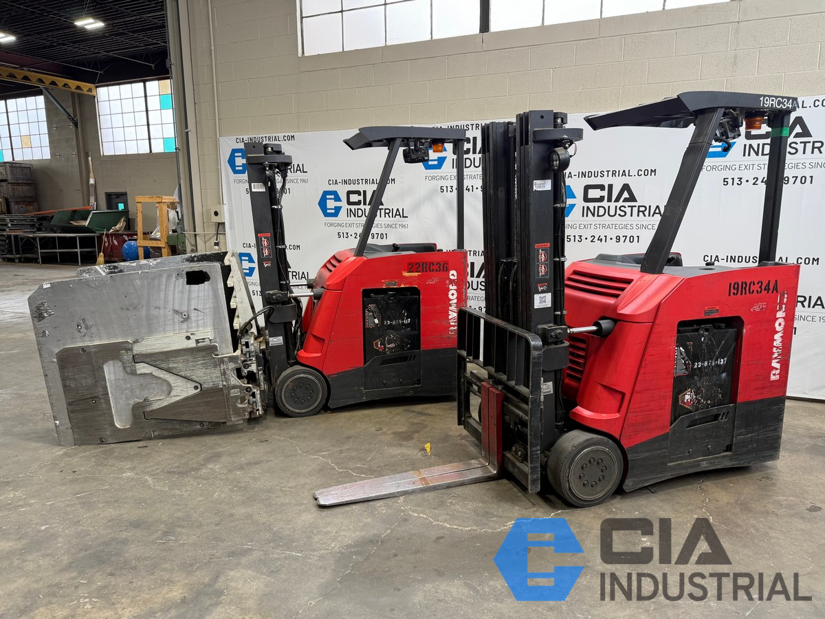 • (3) 2021 – 3,000 Lb. Raymond Model 415-C30TF Stand-Up Electric Forklifts